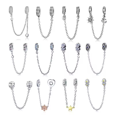 DIY Making Jewelry 925 Sterling Silver Zircon Safety Chain Link Charm Beads