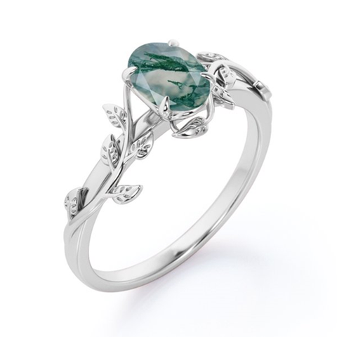 Hot Sale Fine Jewelry 925 Sterling Silver Leaf Oval Cut Moss Agate Ring for Women