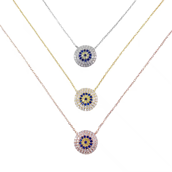 Lucky Theme Jewelry 925 Sterling Silver 3A Cubic Zircon Hamsa Eye Pendant Necklace