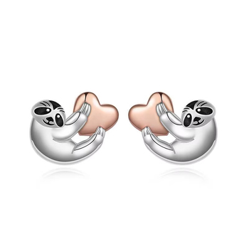 Fine Jewelry 925 Sterling Silver Cute Sloth Hold Rose Gold Heart Stud Earrings for Women