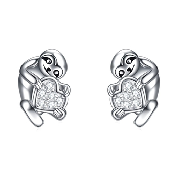 Wholesale Fine Jewelry 925 Sterling Silver Cute Sloth Monkey Zircon Heart Sloth Stud Earrings for Women