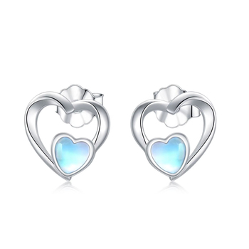 Fine Jewelry 925 Sterling Silver High Quality Moonstone Heart Stud Earrings for Women